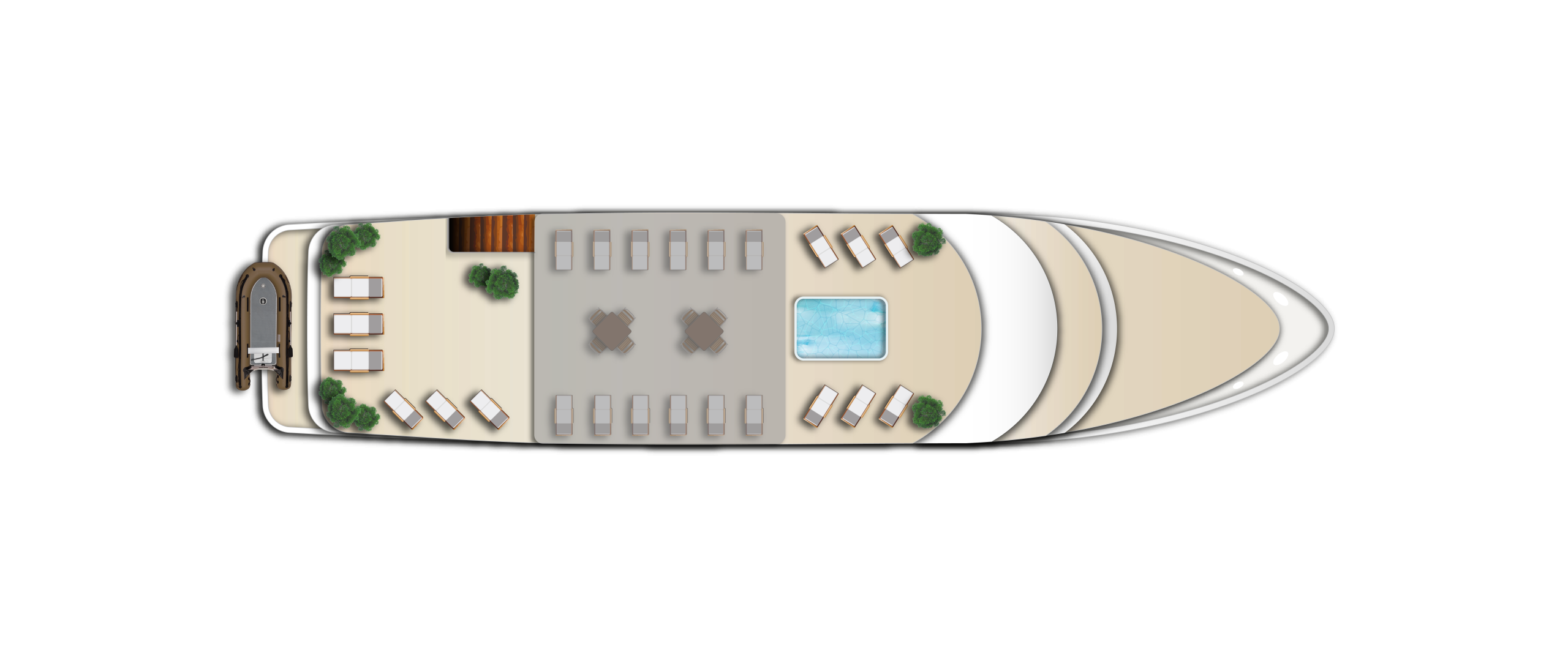 Here you can enjoy our “Elegance Rooftop Jacuzzi“ with its pertaining facilities designed to ensure an unforgettable cruise.